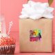Retrato colorido, branco e artístico-mascarada, pintura aquarela com cores brilhantes em vermelho, rosa, verde, amarelo, brilho dourado. Caráter inspirado no Commedia dell' Arte e Carnaval de Veneza e máscaras de penas venezianas.