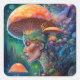 Adesivo Quadrado Lady E Cogumelos Surreal Fantasy Art