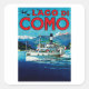 poster de viagens vintage do lago Como, Itália, mostrando um navio a vapor de lago com montanhas ao fundo.