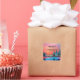 Os autocolantes de negócios com uma bela design gráfica com um lago pacífico com veados. e pinheiros altos sendo refletidos na água. Estrelas sobrepõem-se.