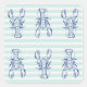 Um verão, design náutico de lagostas azuis únicas em fundo listrado.