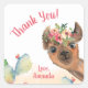 Uma ilustração aquosa de uma lama decora este obrigado de aniversário personalizado que vocês marcam.