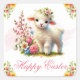 Adesivo Quadrado Lamb and Spring Flowers Happy Easter