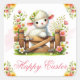 Adesivo Quadrado Lamb, Flower Crown & Wooden Gate Happy Easter