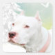 Um pitbull branco tipo pitbull terrier com fundo de neve, Natal ou apenas inverno, cão amante vinheta de férias