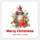 Adesivo Quadrado Lanterna de Natal Vermelho Poinsettia e Pinheiro