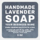 Um adesivo de sabão de lavanda moderno e mínimo feito à mão com seu nome e site ou endereço em tipografia simples branca de na moda num fundo azul escuro. Basta adicionar o nome da sua empresa, o nome do produto, ingredientes, peso e o seu site ou endereço à etiqueta. Desenvolvido exclusivamente para você pelo Happy Dolphin Studio. Se precisar de ajuda ou produtos correspondentes, entre em contato conosco em happydolphinstudio@outlook.com.