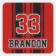 Design de padrão preto clássico de dupla corrida em um fundo vermelho escuro. Personalize com o nome, monograma, iniciais ou texto (limitado) de sua escolha e o número do seu piloto favorito. Projetado para o esporte de na moda, Nascar, Indy 500, Le Mans ou Fórmula 1, o amante ou proprietários de carros clássicos, carros musculares, bastões quentes, shows de carros
