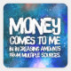 "Dinheiro vem até mim em quantidades crescentes de várias fontes." Lei de Atrair Dinheiro Manifestação Citação Afirmação de Riqueza