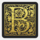 Adesivo Quadrado Letra B Primeira Letra Faux Dourado Preto