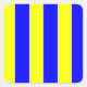 Sinalizador náutico - Sinal - Letra G Padrões. Sinalizador de linguagem de sinais marítimos quadrados que significa "Golf" - letra G com bares colorido de faixas amarelas e azuis com adesivos quadrados.
