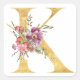 Adesivo Quadrado Letra K monograma dourado com flores