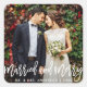 Adesivo de Natal com Foto de Casamento Letra Moderna de Pincel Casados e Feliz