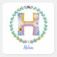 Adesivo Quadrado Letras Flores Iniciais "H" com Nome Personalizado