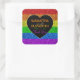 Adesivo Quadrado LGBT bandeira arco-íris faísca casamento coração O