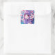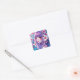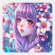 Adesivo Quadrado Linda Menina de Animação com Cabelo Roxo