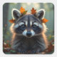 Adesivo Quadrado Lindo Guaxinim em Folhas de Outono