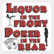 Líquido no pôquer da frente, no adesivo da retaguarda, com silhuetas de pintinho quente e cartões de jogar.