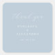 This elegant wedding sticker design features a soft, pastel blue color palette that exudes a serene and romantic atmosphere. The minimalist layout showcases delicate typography with a mix of cursive and clean sans-serif fonts, creating an inviting and sophisticated look. Perfect for expressing gratitude to guests on your special day, the design's simplicity allows it to seamlessly complement any wedding theme. Its understated charm makes it ideal for adding a personal touch to envelopes or gift bags, ensuring your appreciation is beautifully conveyed.