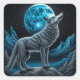Adesivo Quadrado Lobo em frente à lua cheia | arte AI
