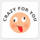 Um rosto engraçado com o texto: louco por você.