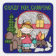 Meninas que adoram acampar adorarão este design de exterior fofo com uma garota loira de cabelos em férias de acampamento, um urso, coruja, campista, árvores e fogo no acampamento!