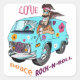Homem Hippie no ônibus com "Love peace Rock-N-Roll"