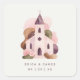 Lovely Rustic Pink Tones Church Illustration Wedding Square Stickers Design.
