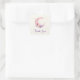 Adesivo Quadrado Lua cor-de-rosa com flores Bonito Obrigado