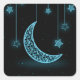 Adesivo Quadrado Lua e Estrelas do Crescente Azul e Negro