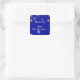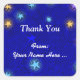 Um adesivo de agradecimento personalizado com guião branca e letras itálicas e elegante arte de vintagem de estrelas coloridas sobre um fundo azul gravado.