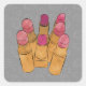 Uma coleção de batom bonito num pano de fundo de um padrão de beijo estilizado.