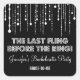 É a última jogada antes do anel celebrar no estilo e juntar as garotas com este festa de solteira divertido. Uma fileira de luzes cintilantes pendura do topo deste adesivo com o texto "O último fling antes do anel!" embaixo. Adicione um nome, evento, função de festa de casamento ou qualquer outra informação sobre o fundo preto rico. Disponível em cores alternativas com produtos correspondentes. com