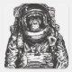 Este design apresenta um retrato de um chimpanzé em uma roupa de astronauta.