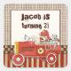 Adesivo Quadrado Macaco Retro Sock, Aniversário do Rapaz Bombeiro