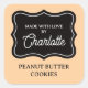 Made with love elegant baked good label stickers. Elegant design for bakers and baking enthusiasts. Add your own custom name and text. Great for baking peanut butter cookies, cupcakes, brownies, muffins, jelly, jams, honey and other tasty sweets. Background color can be changed.
