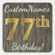 Adesivo Quadrado Madeira Faux, Faux Dourado 77.o aniversário + nome