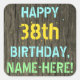 Este design de autocolante de aniversários divertido apresenta uma mensagem como "FELIZ 38º ANIVERSÁRIO, NOME AQUI!", onde o nome pode ser personalizado. O fundo apresenta um padrão de aparência rústico, castanho e falso em grãos de madeira. O texto de mensagem personalizável apresenta cores como azul, amarelo e verde, e tem uma aparência inspirada pela de letras pintadas e estêncilhadas. Os adesivos como estes poderiam talvez ser dados como presente, ou talvez usados como decorações numa festa de aniversário para alguém que comemora os seus trinta e oito anos de aniversário. [~Z0000296]