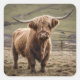 Adesivo Quadrado **"Majestade Furry: A Vaca do Planalto Wooly Brown