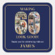 60th Birthday Photo Collage "Making 60 Look Good" 3" Square Stickers. Celebrate the man in your life who's turning 60 with these elegant and festive square stickers featuring 11 photos of him with his friends and loved ones. The fonts are clean, modern, trendy, and easy to read in gold and white on a navy blue background. They'll look fabulous on your thank you favors!