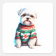 Adesivo Quadrado Maltês engraçado no palheiro de suéter de Natal