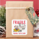 Uma cara de desenho confusa passou sua garfo através de uma caixa rotulada Frágil. Um adesivo frágil que, espero, pega o olho do manipulador com o desenho engraçado.