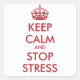 Adesivo Quadrado Manter Calmo e PARAR O STRESS - texto personalizad