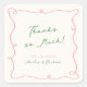 Adesivo Quadrado Mão Branca Desenhada Rosa E Verde Obrigado