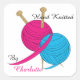 Etiquetas bonitas com uma fotografia de duas bolas de tricô de lã e agulhas de tricô de madeira que as percorrem. Ideal para todas as pessoas artesanatos que adoram tricotar com a leitura de texto Mão tricotada, e fácil de personalizar com um nome pessoal.