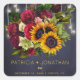 Favor de casamento em estilo russo ou autocolante de cartaz com um grande e rústico girassol amarelo e rosa vermelho e um falso roteiro de tipografia de ouro em um fundo azul-escuro do marinho da meia-noite com luzes de corda. Ideal para o seu floral de inverno, Natal, tarde da noite de verão ou outono | elegante país russo | matrizes tradicionais com temas de jardinagem ao ar livre. Personalize-o com os nomes da noiva e do noivo e os detalhes do casamento!