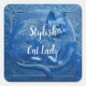 azulejo de gato azul-marinho-alivio-azul inspirado nos azulejos de Art Nouveau e nas palavras "Senhora de gato Na moda". O texto é totalmente editável.