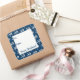 Vinhetas de Natal de Starfish para embrulhar presentes. Cor azul marinho com padrão de estrelas brancas do mar, este adesivo quadrado vem em dois tamanhos. Personalize o texto para dizer "Feliz Natal" ou outras saudações. Um painel quadrado branco no centro é vazio para nomes.