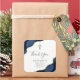 Este adesivo da Primeira Comunhão - você apresenta marinho azul de aquarela, designs agatificados com falso brilho dourado em dois cantos. Uma cruz de folha falsa de ouro aparece acima das palavras "Obrigado" em cinza de carvão escrita manual sobre fundo branco. Personalize-o com o nome do convidado de honra, a ocasião e a data em cartazes de cinza de carvão.