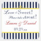 "O amor é doce! Por favor, dê uma olhada!" é o texto sobre este adesivo náutico inspirado na forma quadrada do marinho, azul e branco, de 1,5", em forma de quadrado, com um adesivo de boné de casamento com um pergaminho amarelo no topo e uma inscrição vermelha e marinho que corresponde ao convite de casamento mostrado abaixo. Há outras formas e tamanhos que você pode escolher. ****Tenha cuidado se você mudar a forma do adesivo, já que partes do design e/ou texto podem ser cortadas como limite seguro para o texto é bastante grande. Se você trocar fontes, elas também podem se estender até a fronteira segura, então é melhor me contatar para fazer outra forma para você. Se precisar de assistência, envie um email para niteowlstudio@gmail.com.